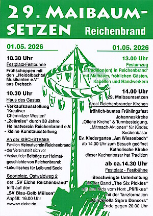 Seit mehr als 25 Jahren führen wir unser über Ortsgrenzen hinaus beliebtes „Maibaum-Setzen“ mit Umzug und Festlichkeiten durch. In allererster Linie ist das ein Verdienst des Heimatvereins Reichenbrand e.V. mit seinem unermüdlichen „MaibaumTeam“. Es wäre aber niemals machbar ohne starke Förderer und Gleichgesinnte an unserer Seite.